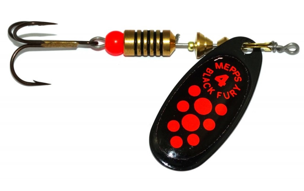 Błystka obrotowa Black Fury czarny czerwone kropki 4/8g Mepps